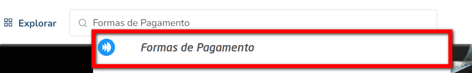 1. Na lupa de busca do sistema pesquise por "Formas de Pagamento";