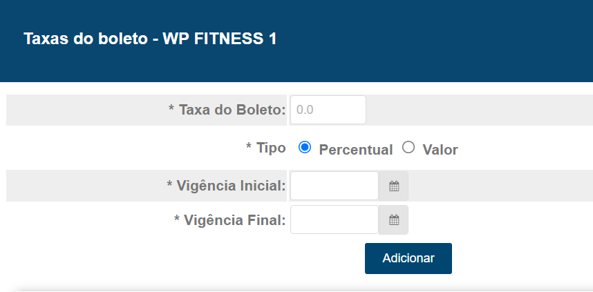 - Taxa do Boleto: informe neste campo a taxa referente ao boleto;
