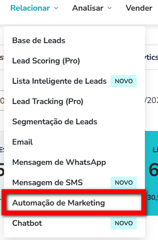 8.1. Depois clique em “Automação de Marketing”;