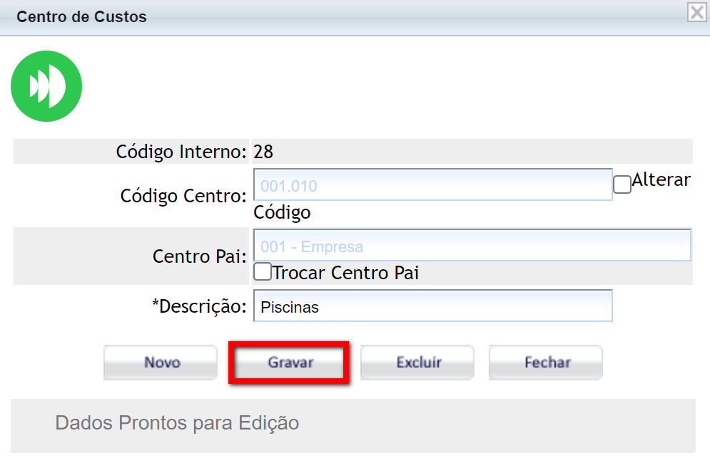 - Trocar Centro Pai: você pode trocar o centro de custos pai, desse centro de custos;