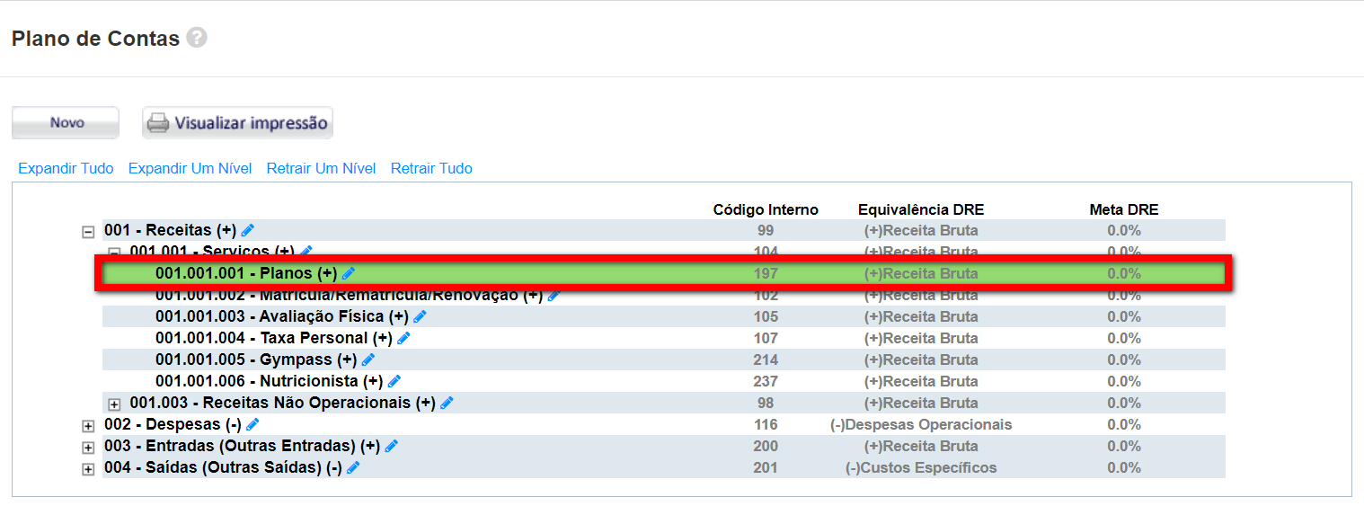 3 . O sistema apresentará uma tela para edição do plano de contas;