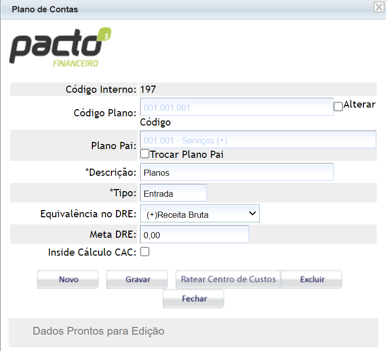 - Trocar Plano Pai: você pode trocar o plano de contas pai, desse plano de contas;