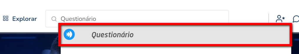 1. Na lupa de busca do sistema, pesquise por “Questionário”;
