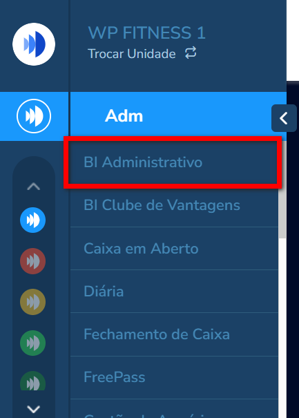 1. No menu do módulo ADM clique em “BI Administrativo”;