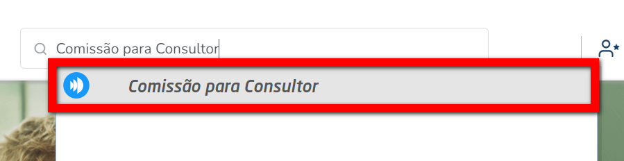 1. Na lupa de busca inteligente pesquise por "Comissão para Consultor";