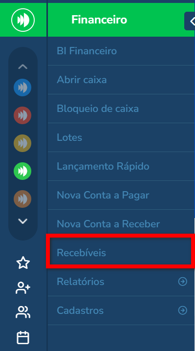 1. No menu do módulo Financeiro localize e clique em "Recebíveis";