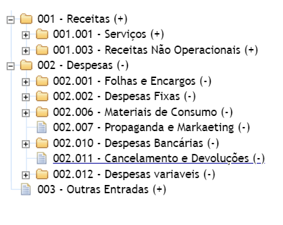 O Plano de Contas é uma estrutura, em árvore, que tem como objetivo organizar e facilitar o entendimento do fluxo das receitas, despesas e investimentos da sua empresa. A partir desses cadastros você conseguirá analisar alguns relatórios financeiros de forma mais clara e intuitiva, assim, obtendo ainda mais conhecimento sobre suas finanças.