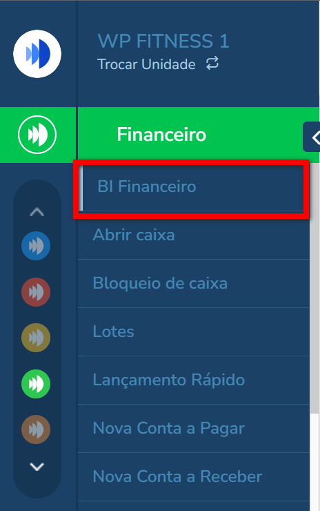 1. No menu do módulo Financeiro, clique em “BI Financeiro“;