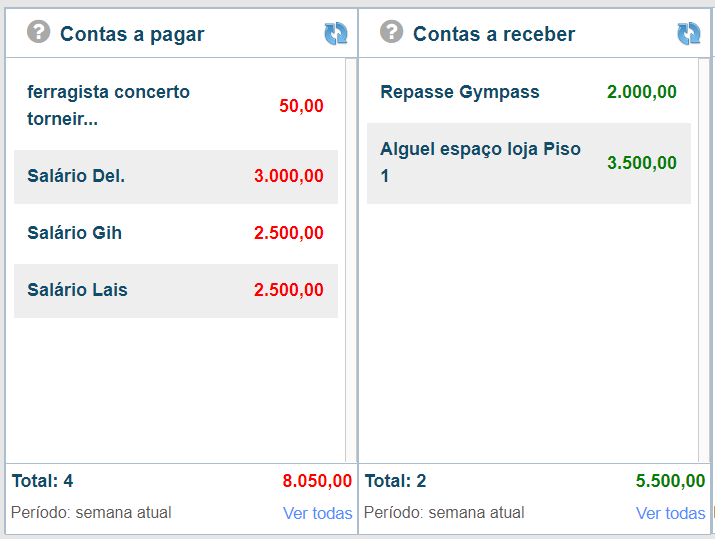 Objetivo deste BI é apresentar todas as contas a pagar e receber que possuem vencimento na semana que está realizando a consulta e que ainda não foram quitadas.
