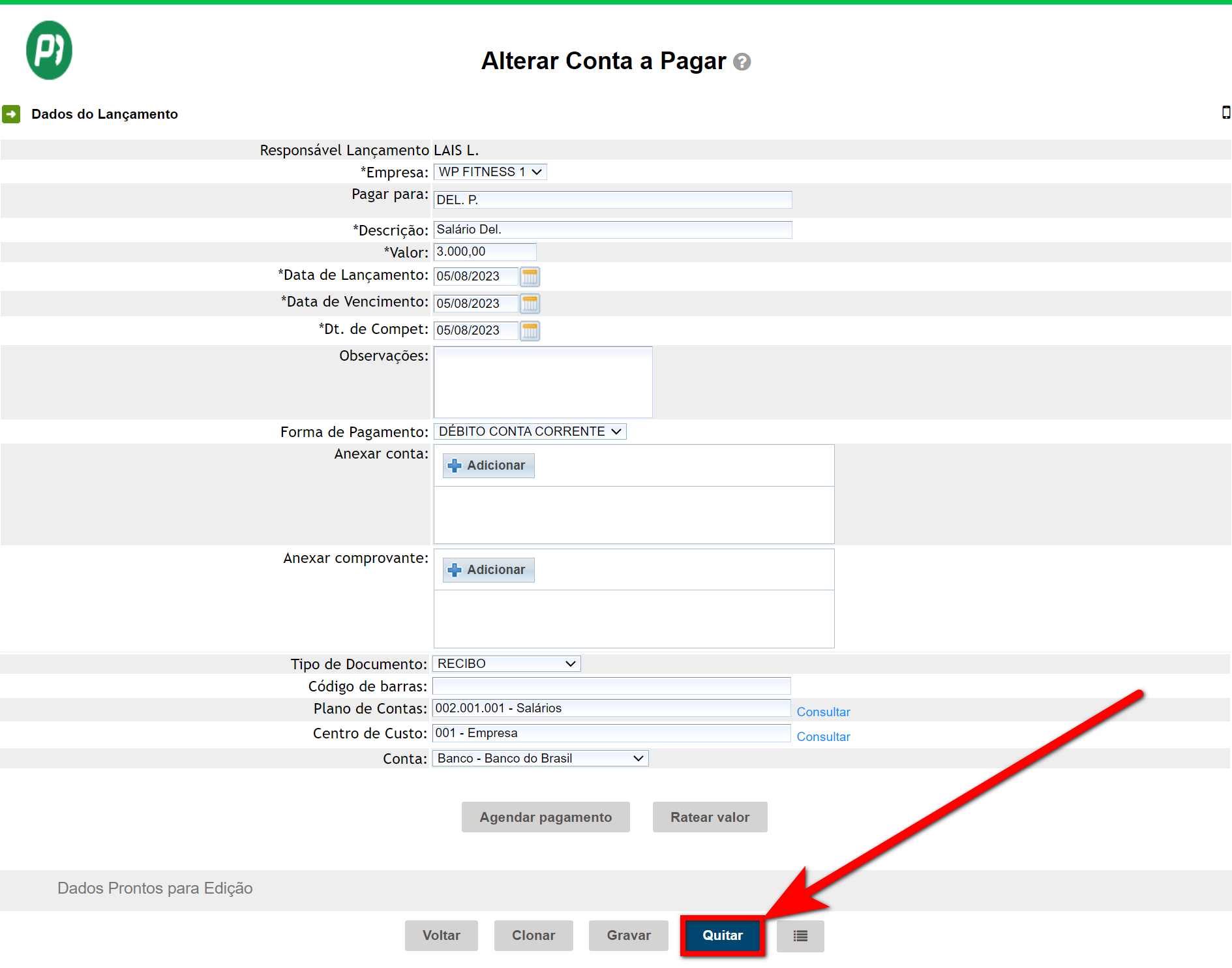 3.1. Clicando sobre a descrição da conta, você será direcionado a uma nova página, apresentado os detalhes dessa conta, onde é possível quitá-la.