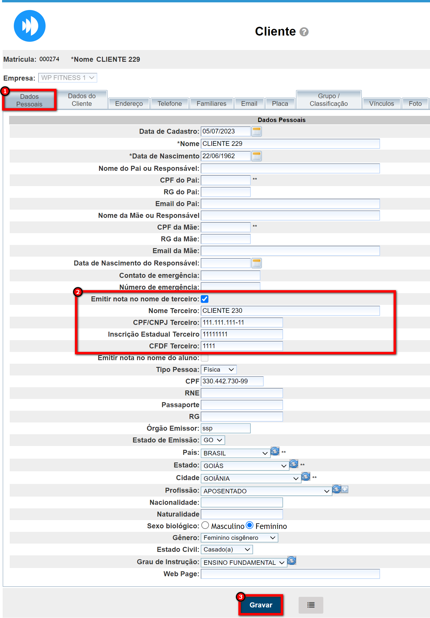 4. Por fim, clique em "Gravar";