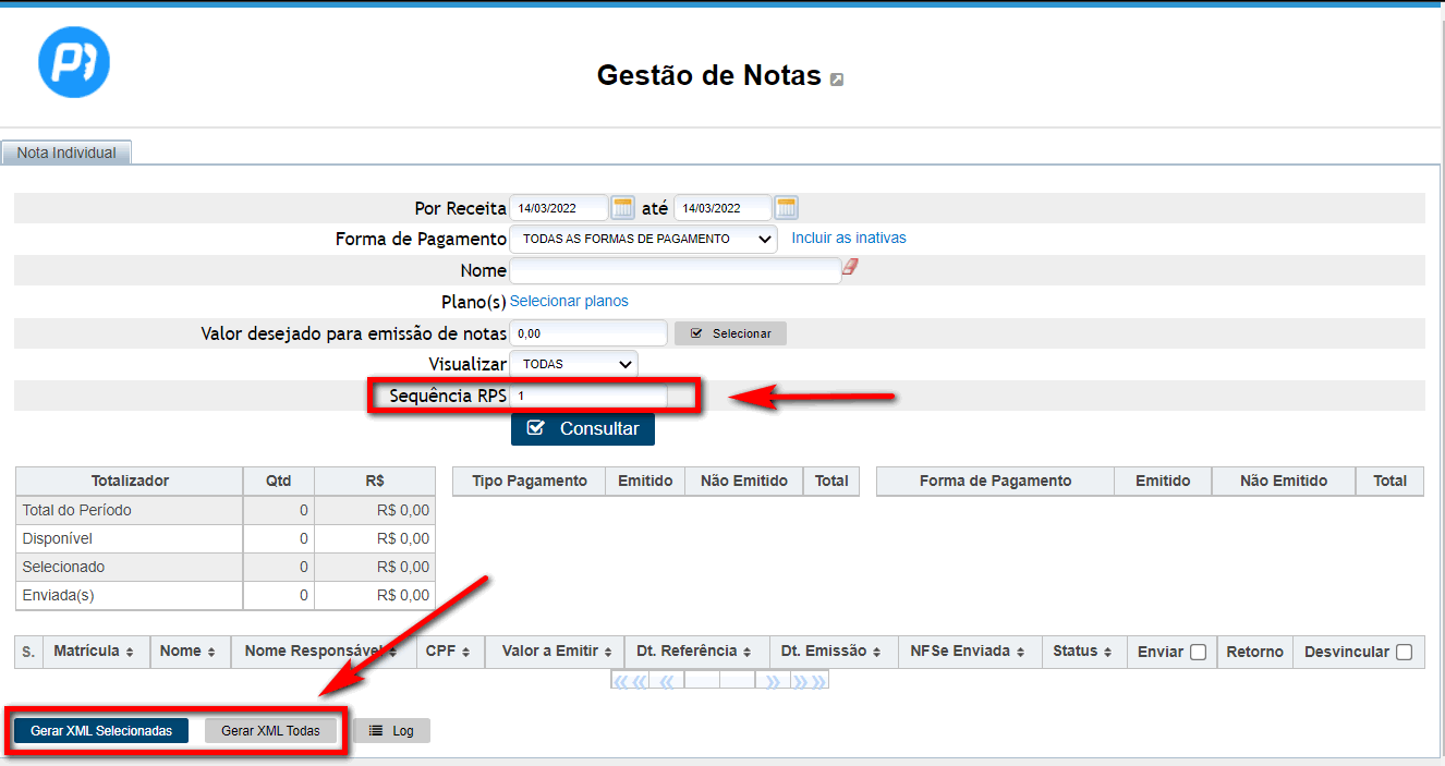 - Gerar XML todas as notas: aqui irá gerar o arquivo de todos os clientes selecionados ou um lote;