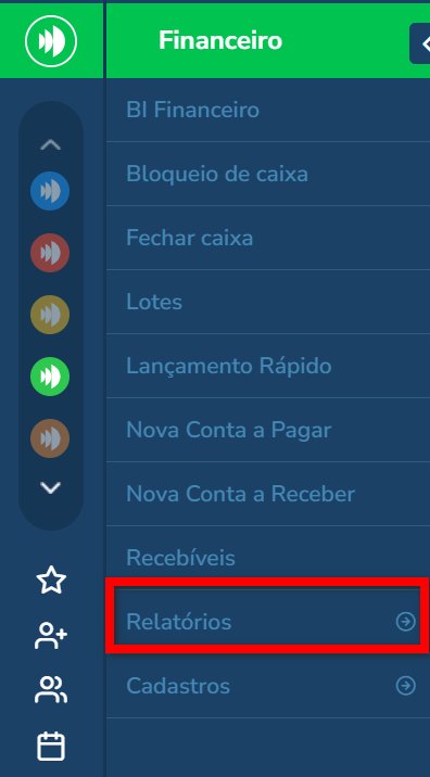 1. No menu do módulo Financeiro, clique em "Relatórios";