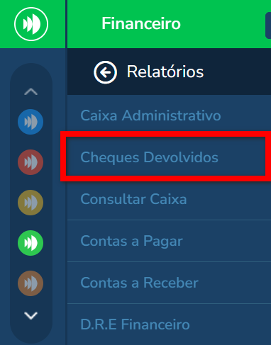1.1. Em seguida, clique em "Cheques Devolvidos".