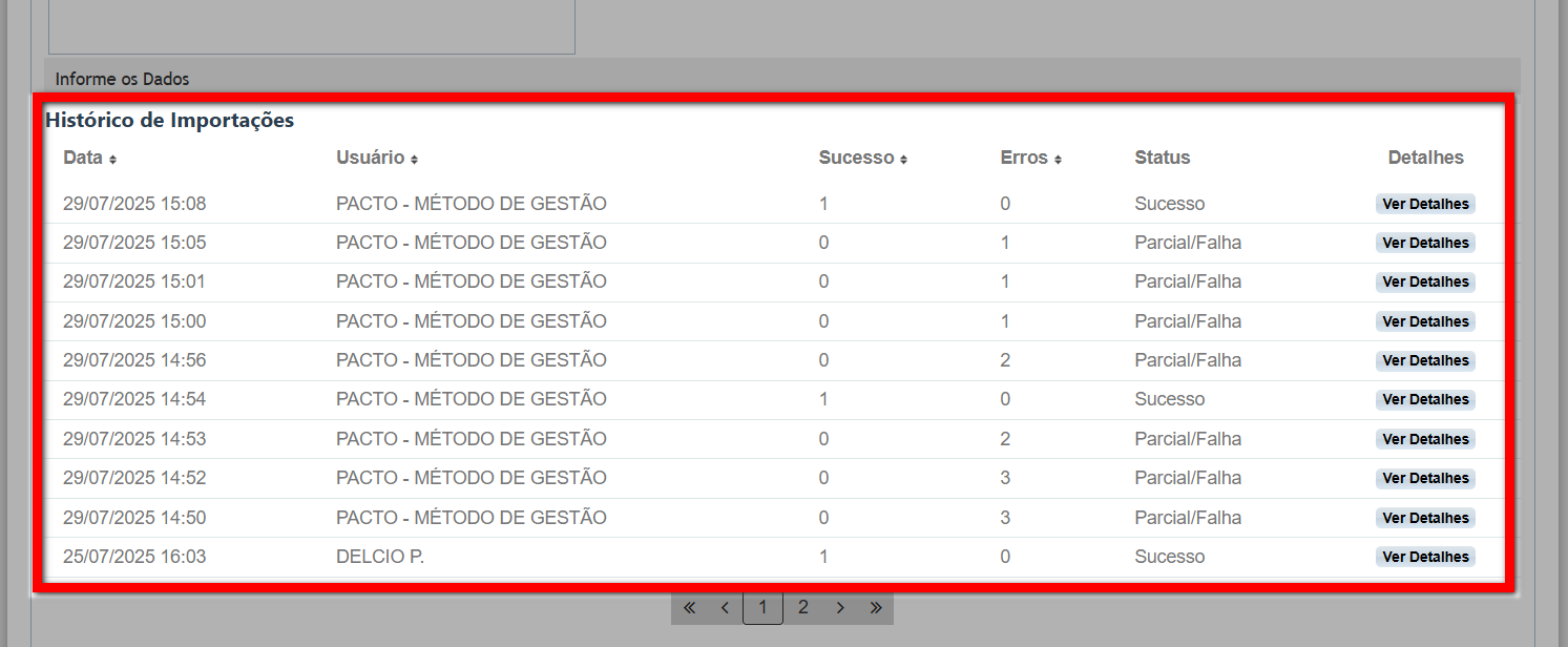 4. Em seguida pode verificar se o arquivo foi importado na sessão de "Histórico de importação";