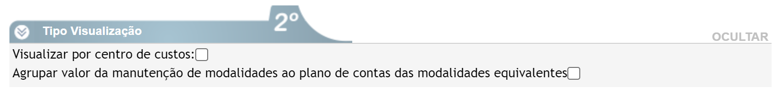 Atenção: se utilizar o filtro "Visualizar por centro de custos" o agrupamento também seguirá aos centro de custos das modalidades equivalentes.