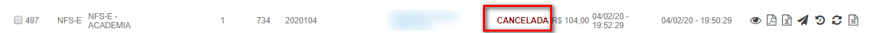 4. Após algum tempo conforme o retorno da sua prefeitura/SEFAZ sua nota vai retornar como "CANCELADA" ou "CANCELAMENTO NEGADO (CONTINUA AUTORIZADA)", esse retorno é dado de acordo com a sua prefeitura/SEFAZ, ou seja, de acordo com as regras de cancelamento da prefeitura, sua nota será cancelada ou não;