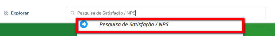 1. Na lupa de busca do sistema pesquise por "Pesquisa de Satisfação / NPS";