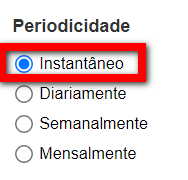 7. Periodicidade de envio: o Sistema Pacto possui uma característica que determina que sempre que utilizado algum dos filtros, além dos Eventos Pré-definidos, ele congela a lista de pessoas a receberem essa mensagem, portanto, obrigatoriamente, você precisa, nessa situação, definir a periodicidade de envio como instantâneo;