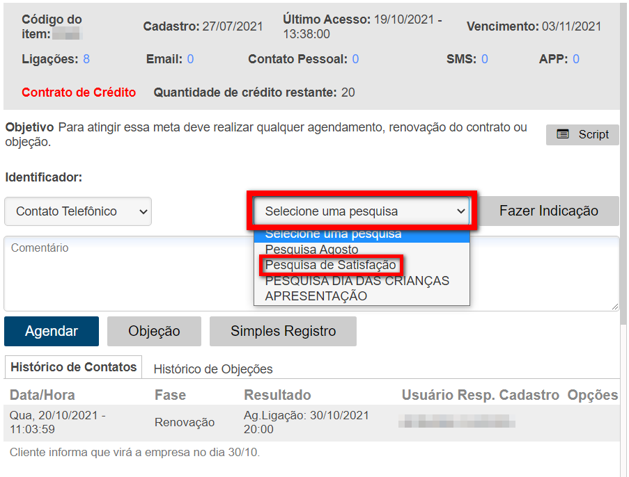 Para saber como cadastrar Pesquisa de Satisfação/NPS, clique aqui.