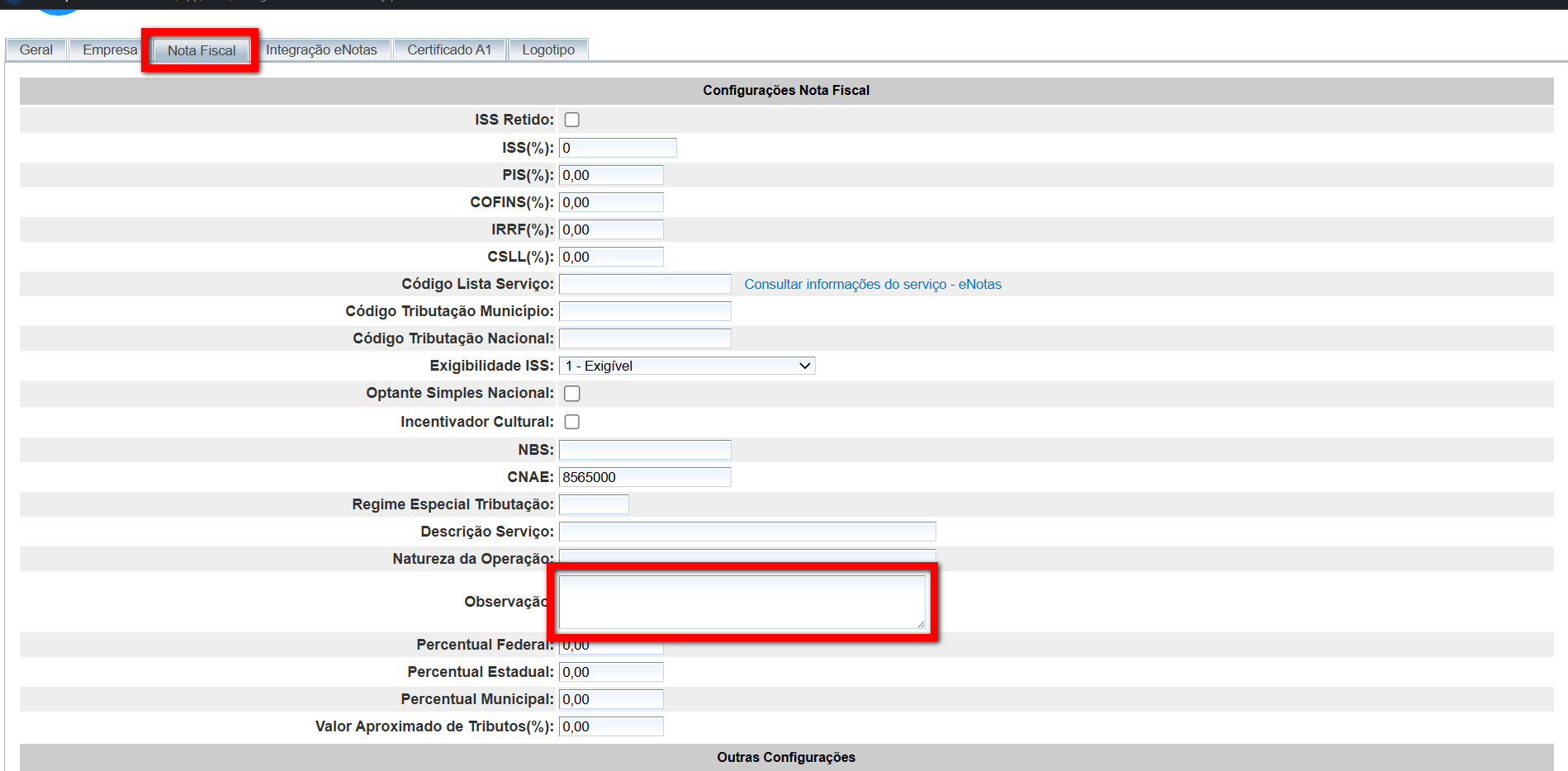 Observação: neste conhecimento verá como adicionar observação para ser apresentada em todas as notas fiscais emitidas.