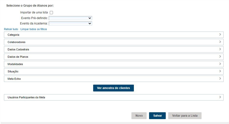 Ver amostra de cliente: visualizar os alunos que serão apresentados nesta meta;