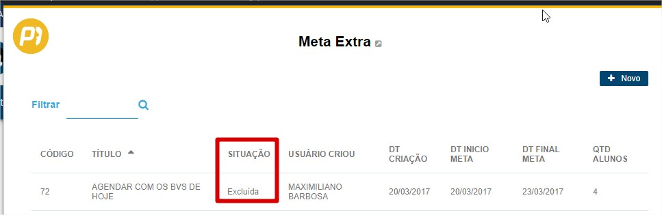 - Meta Extra: caso defina algum dos filtros, ele exibirá os alunos com base na definição.