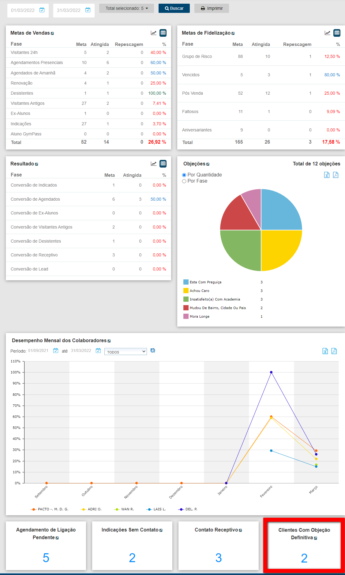 2. Em seguida, localize o BI "Clientes Com Objeção Definitiva" no final da tela;