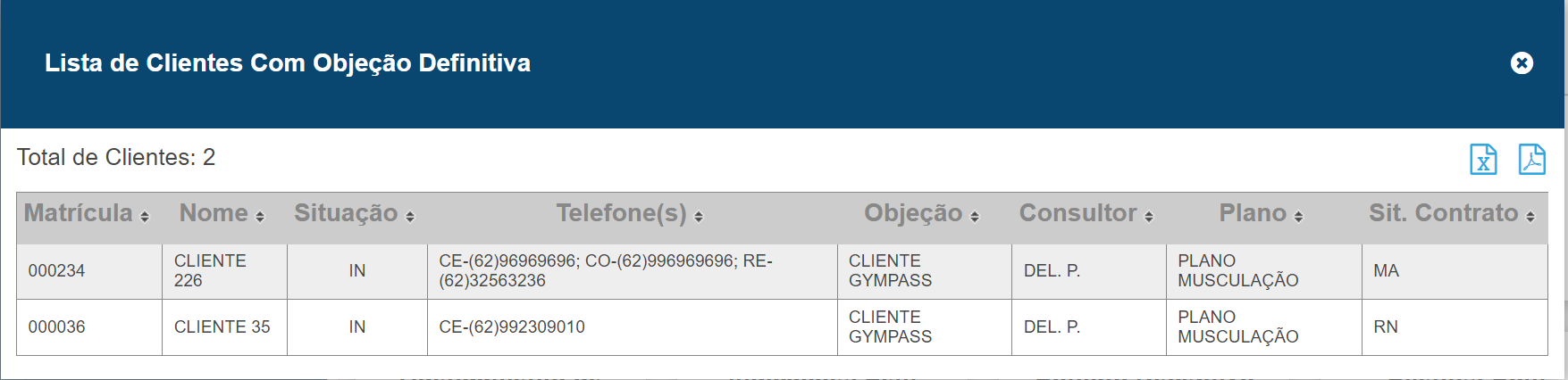 3. Para visualizar os clientes que compõem o número apresentado no BI, clique no número apresentado e será exibido um relatório indicando todos os clientes e detalhes sobre a objeção registrada.