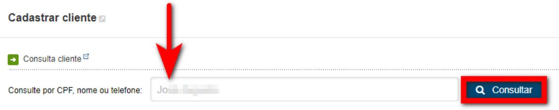 2. Digite o nome do cliente, e clique em “Consultar“;