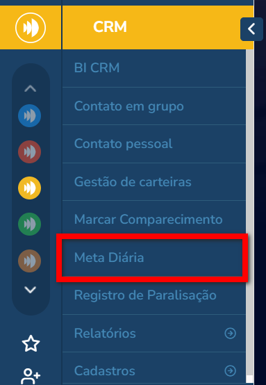 1. No menu lateral do módulo CRM, clique sobre a opção "Meta Diária";