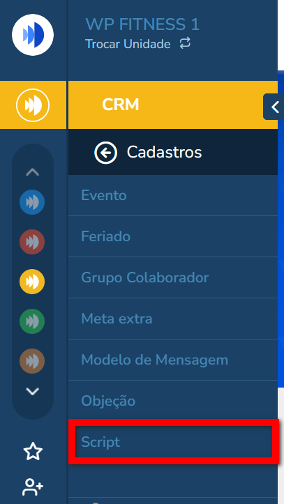 - Fase (CRM): em qual Fase/meta, esse script será apresentado;