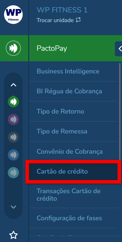 1. No menu do módulo PactoPay, clique em “Cartão de crédito“;