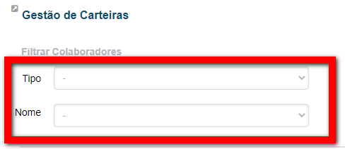 2. Na tela do "Gestão de Carteiras" selecione o tipo de colaborador e o nome dele;