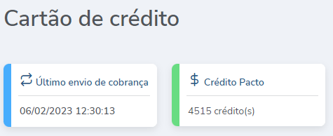 - Crédito Pacto: neste campo é exibida a quantidade de créditos utilizados pela empresa. Se a empresa utilizar o modelo de pagamento pré-pago, será mostrada também a quantidade de créditos restante.
