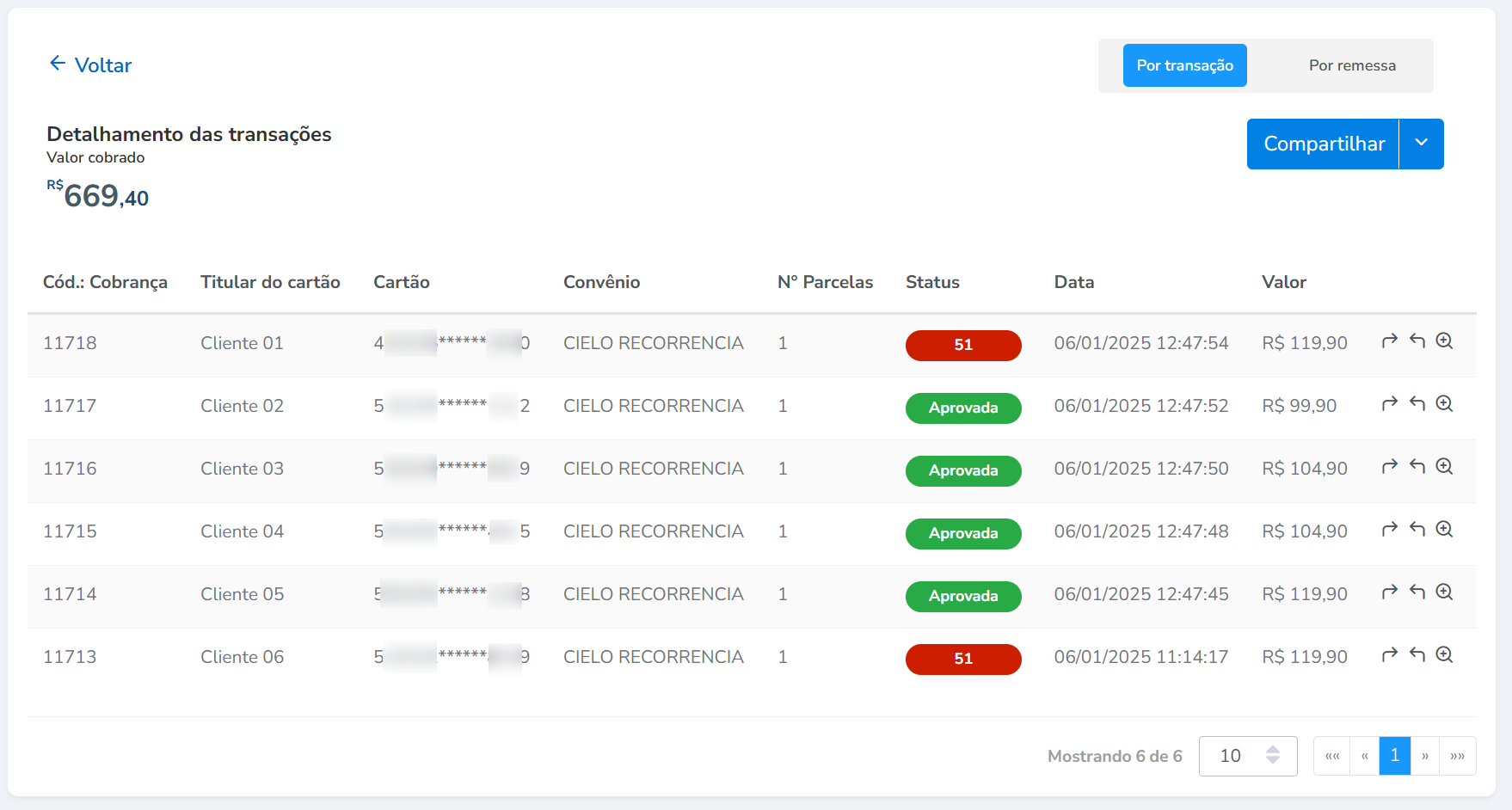 4.2.1.1. Na parte superior, é possível selecionar entre "Por transação" ou "Por remessa".