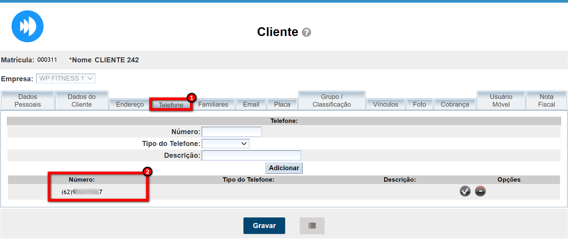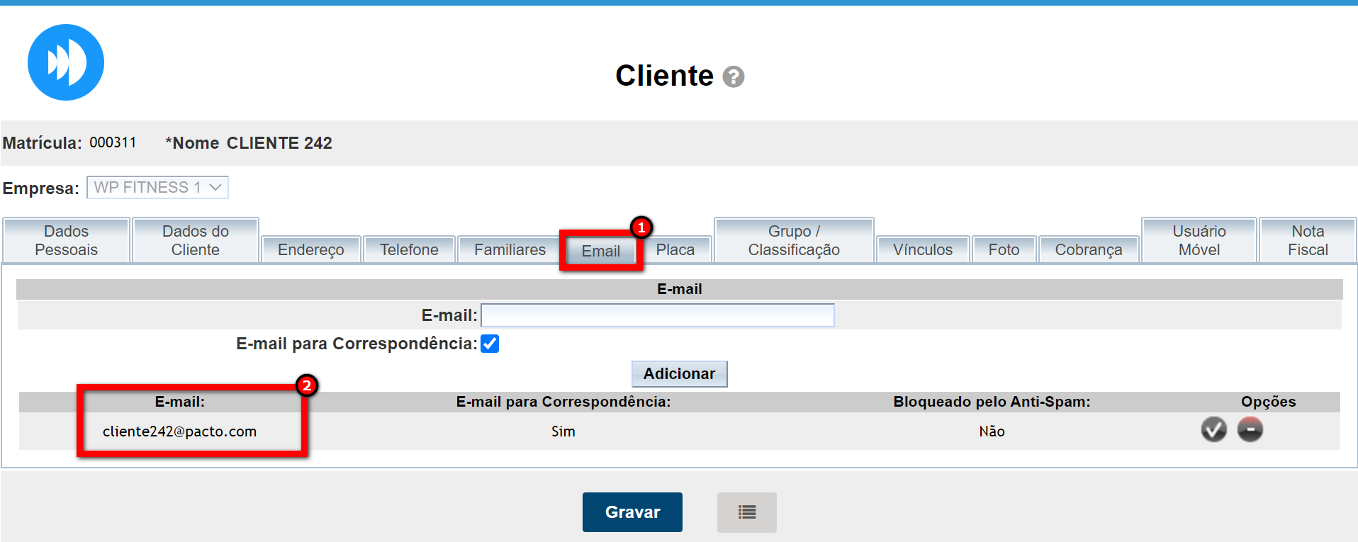 4. Caso necessário alterar algum campo, clique em "Gravar" para salvar as informações.