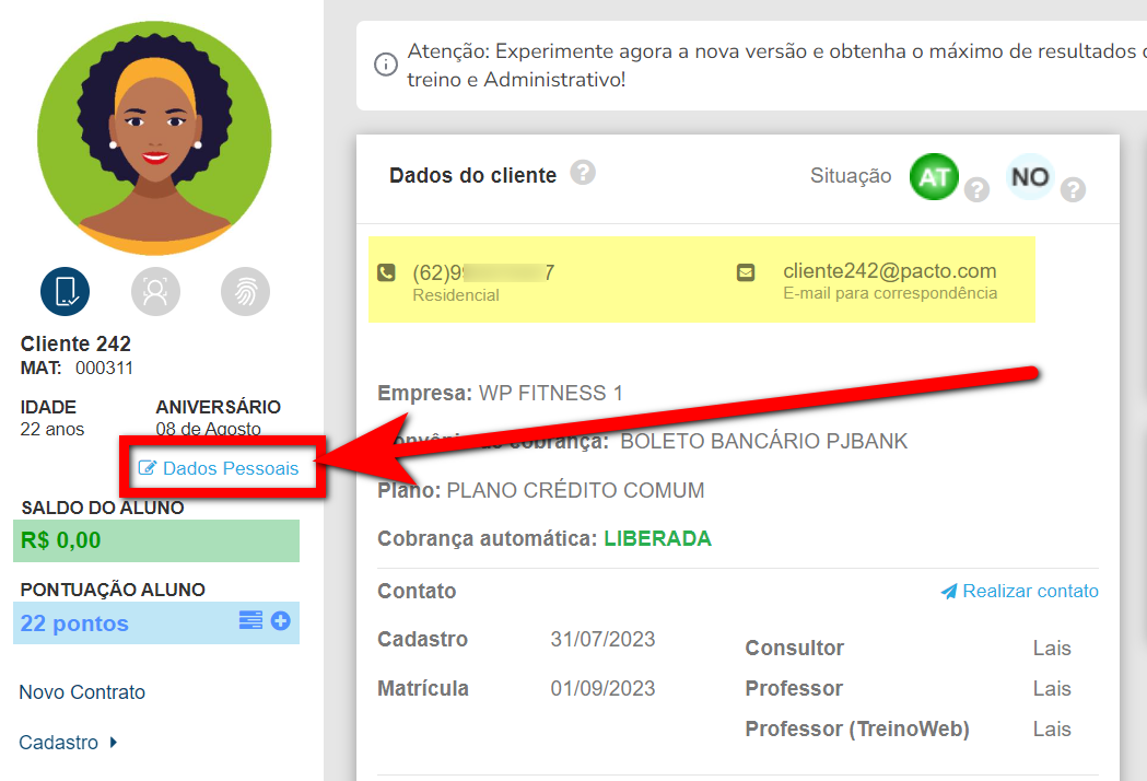 Como verificar no cadastro do aluno (na tela nova do cliente)