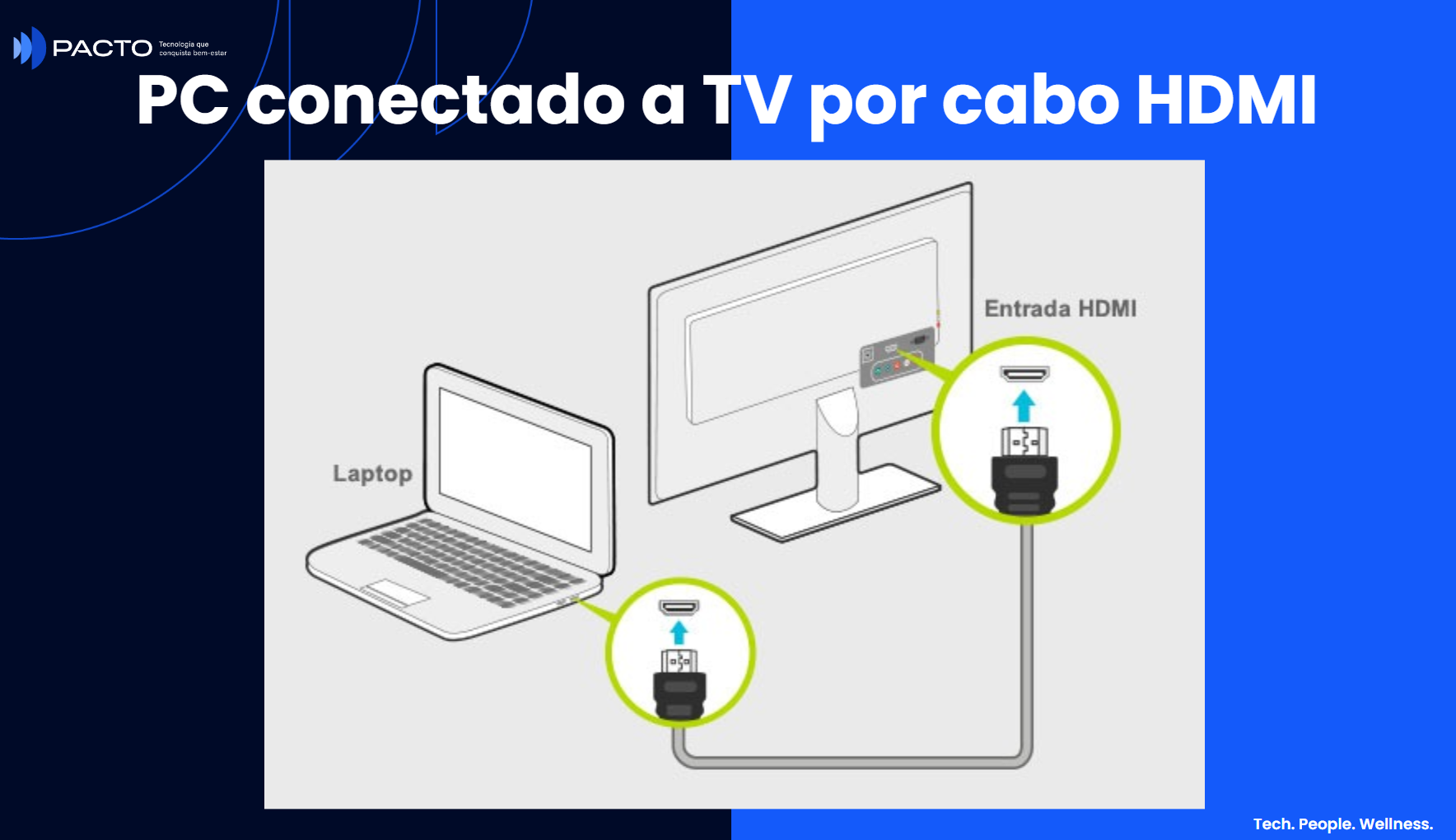 A apresentação pode ser transmitida através de um projetor, TV ou monitor da empresa.