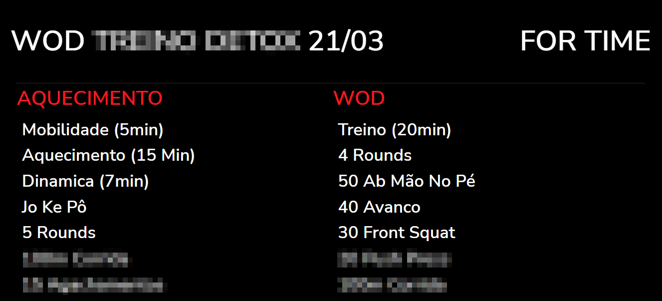 Atenção: esta opção só será apresentada caso um WOD for replicado entre as empresas da rede.Workout: marque esta opção para ser exibido na apresentação os detalhes técnicos do Wod, como os exercícios;