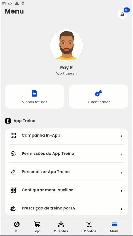 - Personalizar App Treino: nesta opção, consegue realizar a personalização do App Treino;