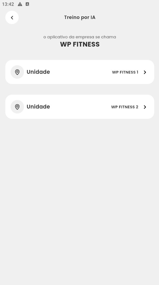 Atenção: caso haja mais de uma unidade, elas serão apresentadas separadamente para que a opção de prescrição de treino por IA possa ser habilitada individualmente para cada unidade.