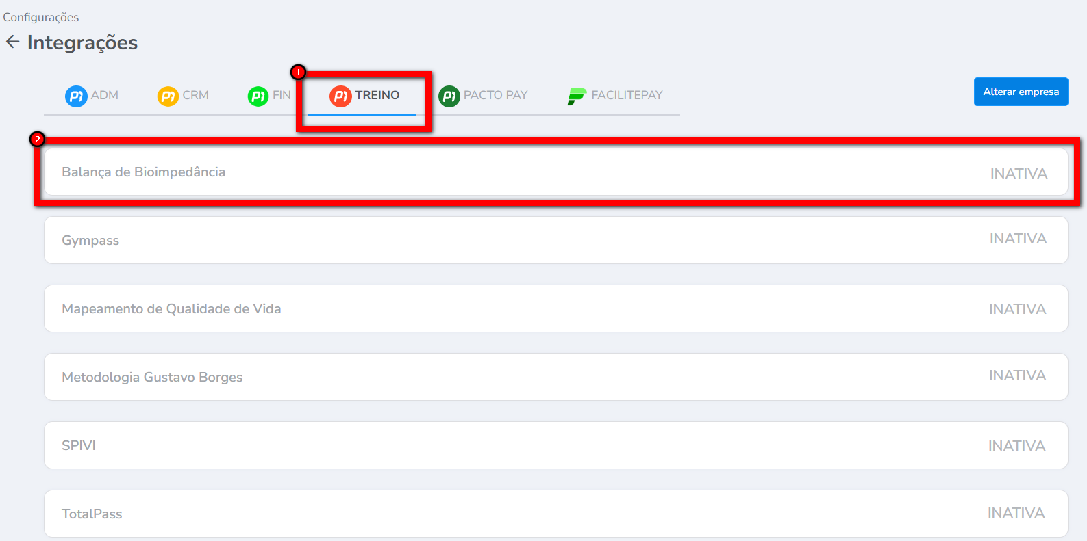 É necessário ter a permissão "Configurações Empresa" habilitada no perfil de acesso do módulo Treino.