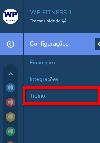 1. No módulo Treino, localize e clique no ícone de “Engrenagem“;