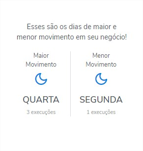 Através dele o gestor consegue visualizar qual o dia da semana e o período que teve mais execuções, podendo realizar ações de eventos na empresa nesses dias de maior movimento.