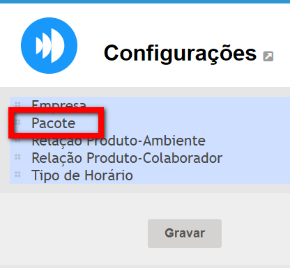 3. Nesta nova tela, clique em “Pacote”;