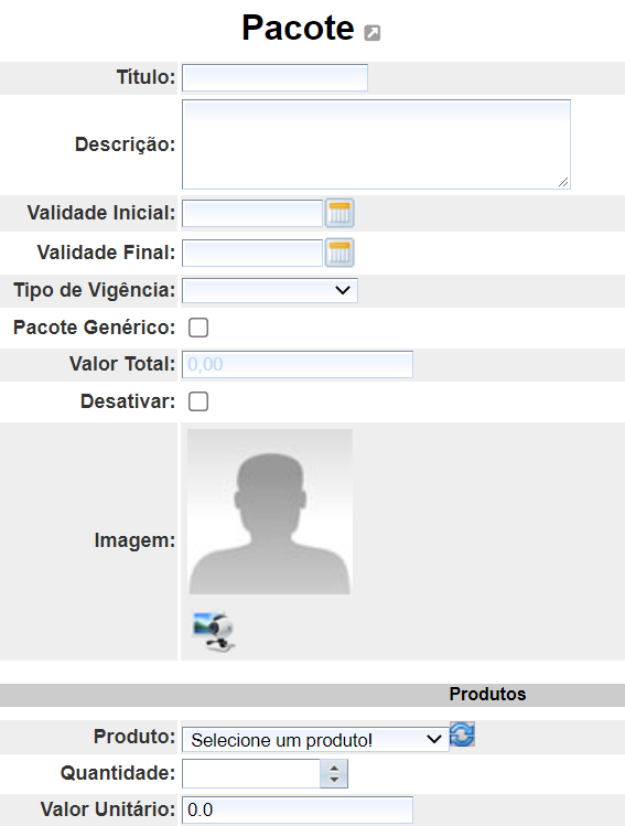 Imagem: neste campo, você pode definir uma imagem que aparece na venda do pacote;