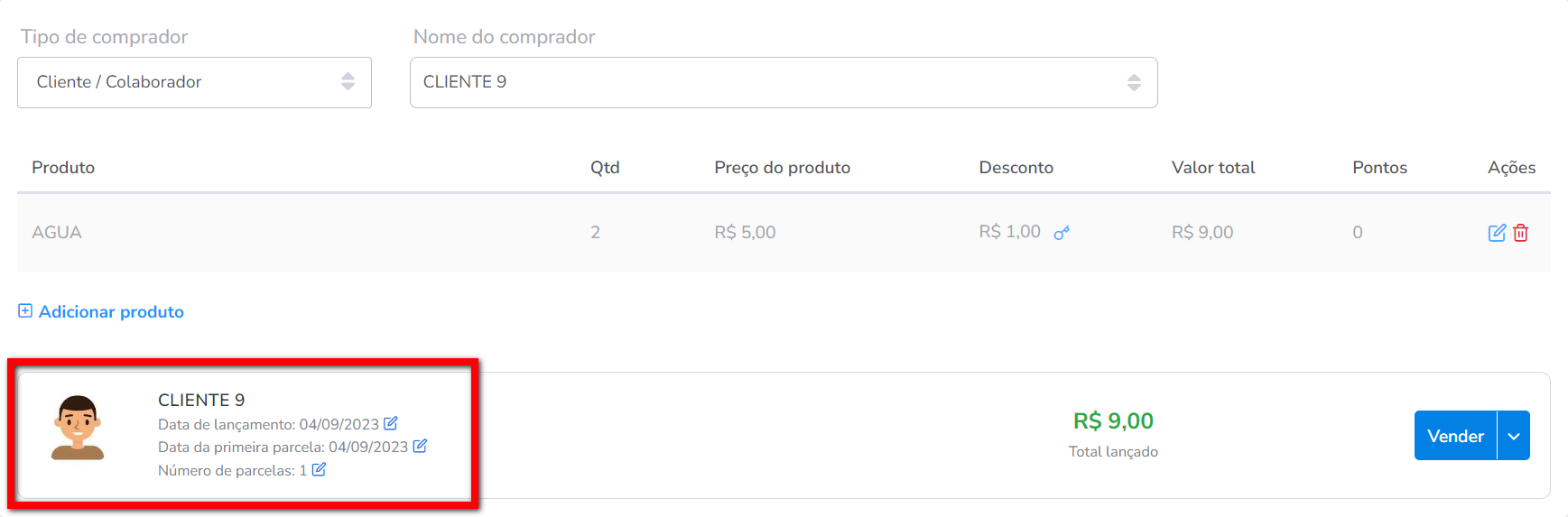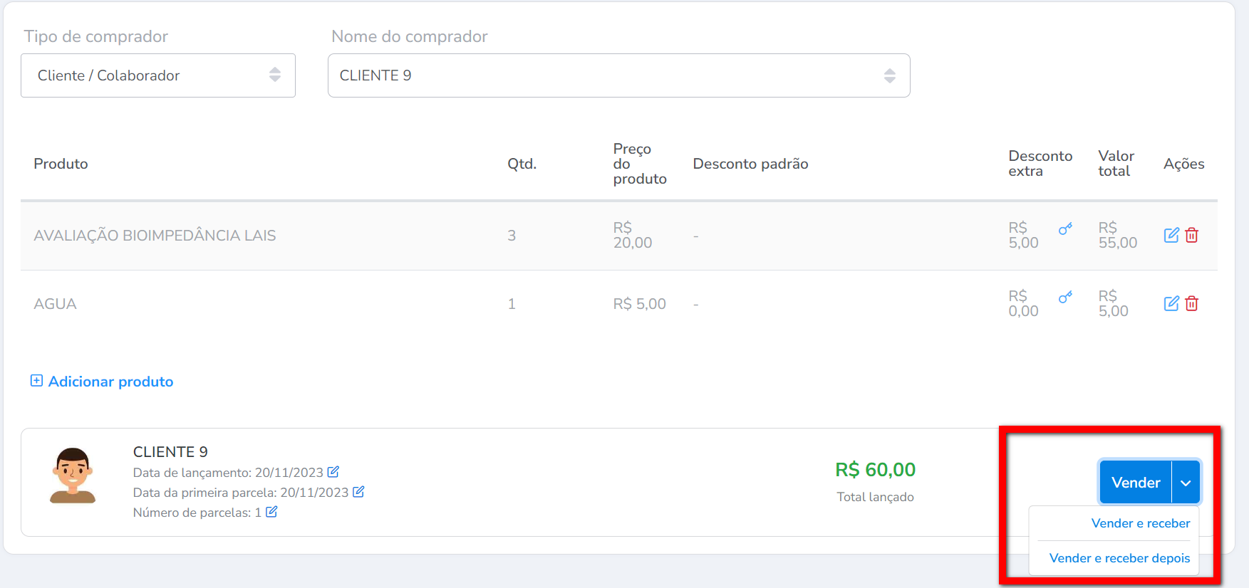 Vender e receber depois: ao selecionar essa opção o sistema finalizará a venda do produto porém deixará a parcela no caixa em aberto do comprador.