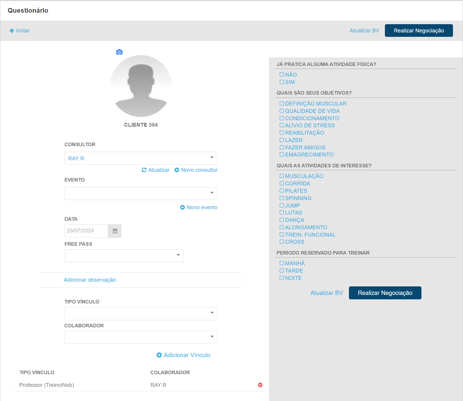 A atualização do BV do cliente é direcionada para pessoas já cadastradas no sistema, ou seja, que no momento do seu cadastro, não foi marcado a configuração "Cliente Sessão".