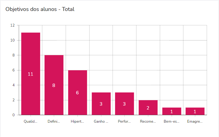 7. O indicador "Objetivos dos alunos – Total". Este indicador exibe, em forma de gráfico, os objetivos da avaliação física, mais selecionados pelos alunos.